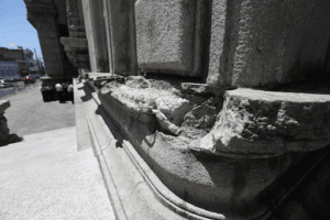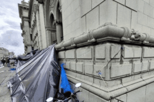 La funcionaria detalló que estos elementos provocaron desgastes, desprendimientos decorativos y deflexiones en balcones, luminarias, rejas y postes de iluminación. En algunos casos, se aprovecharon zonas con hierro expuesto en las fachadas para fijar los refugios, generando tensión estructural y daño directo en componentes históricos.